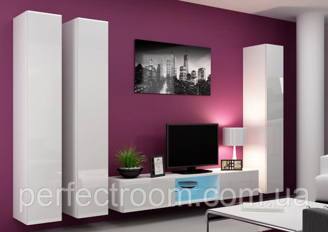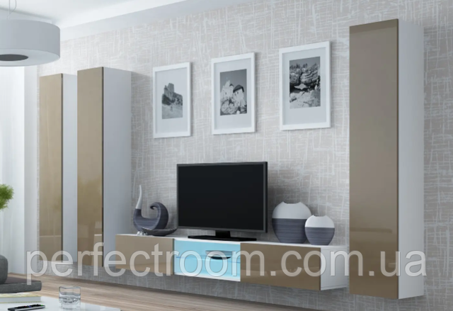 Стінка у вітальню,глянцева стінка в зал Vigo 18 Cama Mebel із системою push-click 180/300/42 см