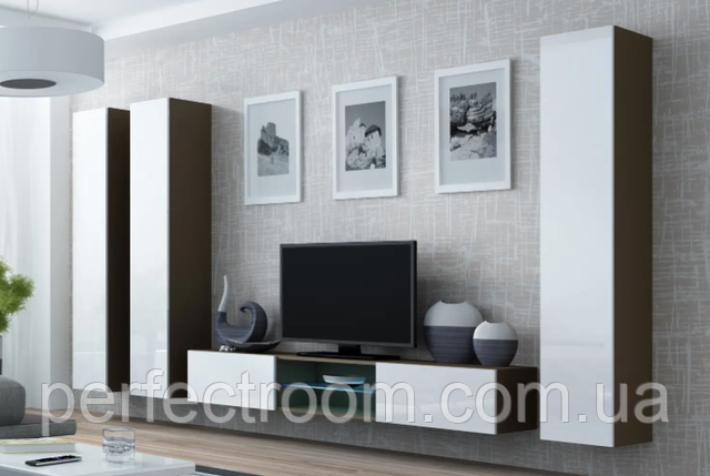Відправка з 03 грудня 2025Стінка у вітальню,глянцева стінка в зал Vigo 18 Cama Mebel із системою push-click 180/300/42 см