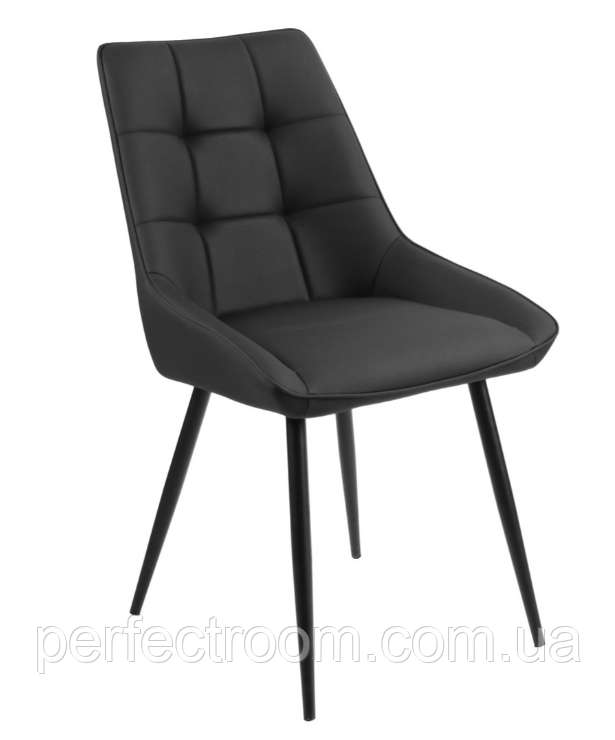 поєднує в собі стильний дизайн, комфорт і якість матеріалів, роблячи його чудовим вибором для вашого інтер'єру. Спинка та сидіння обтягнуті шкірзамінником . Витончені ніжки виготовлені металу та пофарбовані у чорний колір.